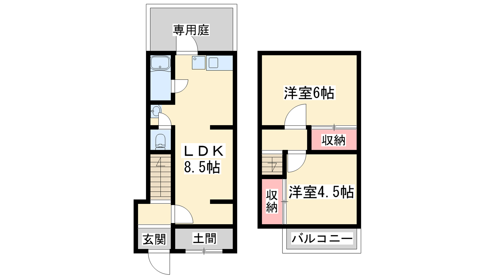 - LDK8.5帖、洋室6帖、洋室4.5帖