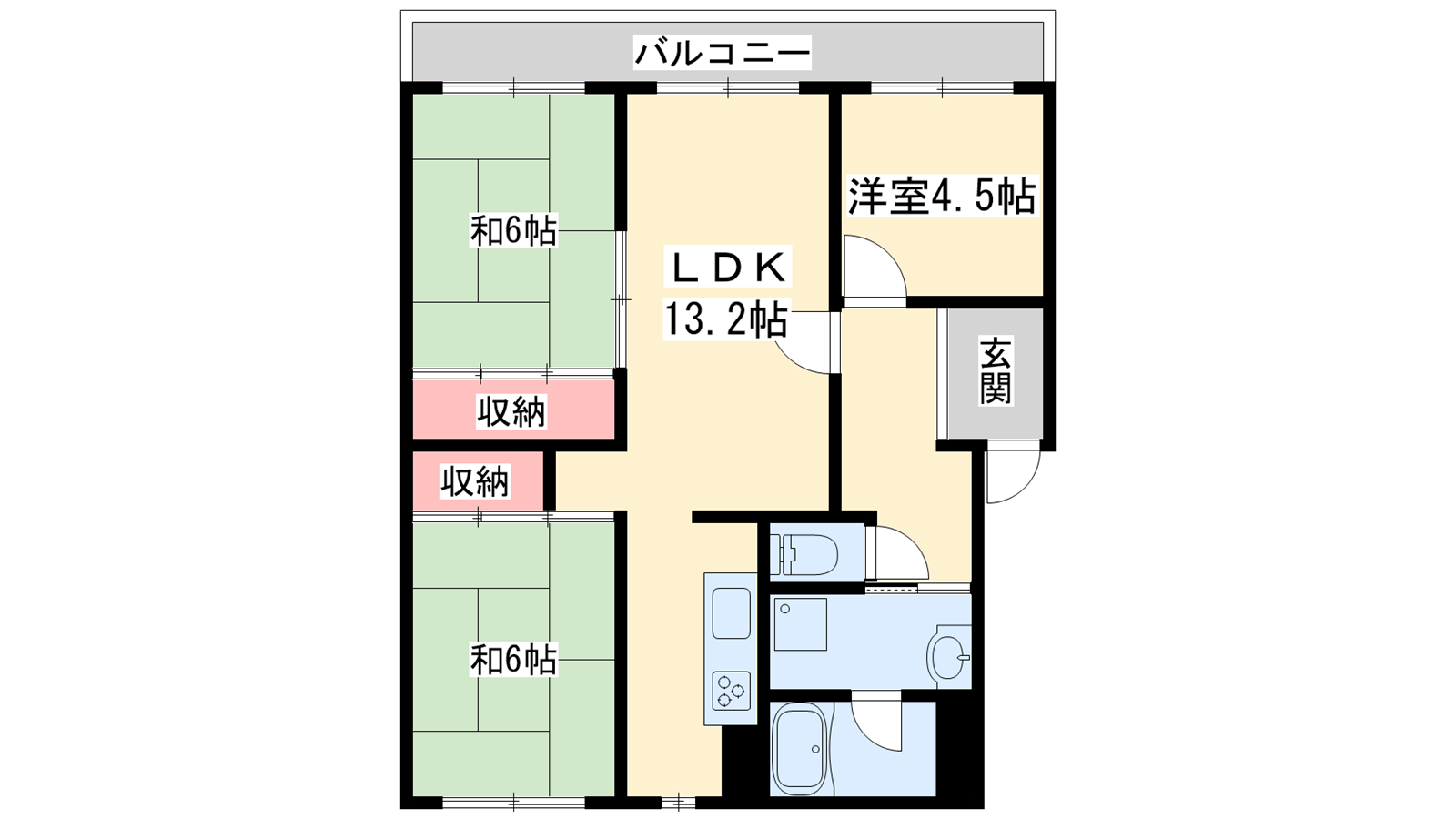 - LDK13.2帖、和室6帖、和室6帖、洋室4.5帖