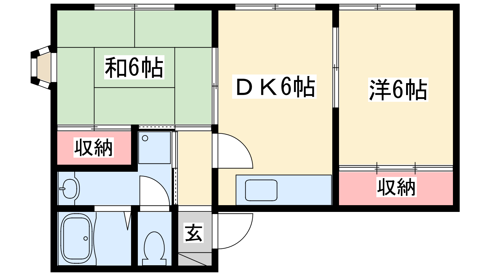 - DK6帖、洋室6帖、和室6帖