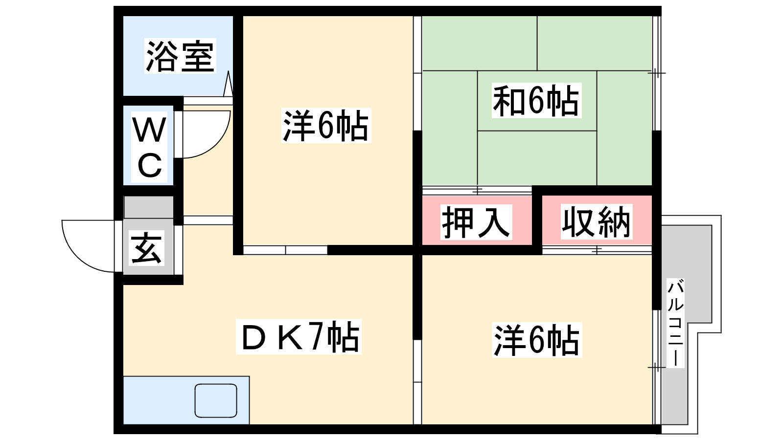 - DK7帖、洋室6帖、洋室6帖、和室6帖