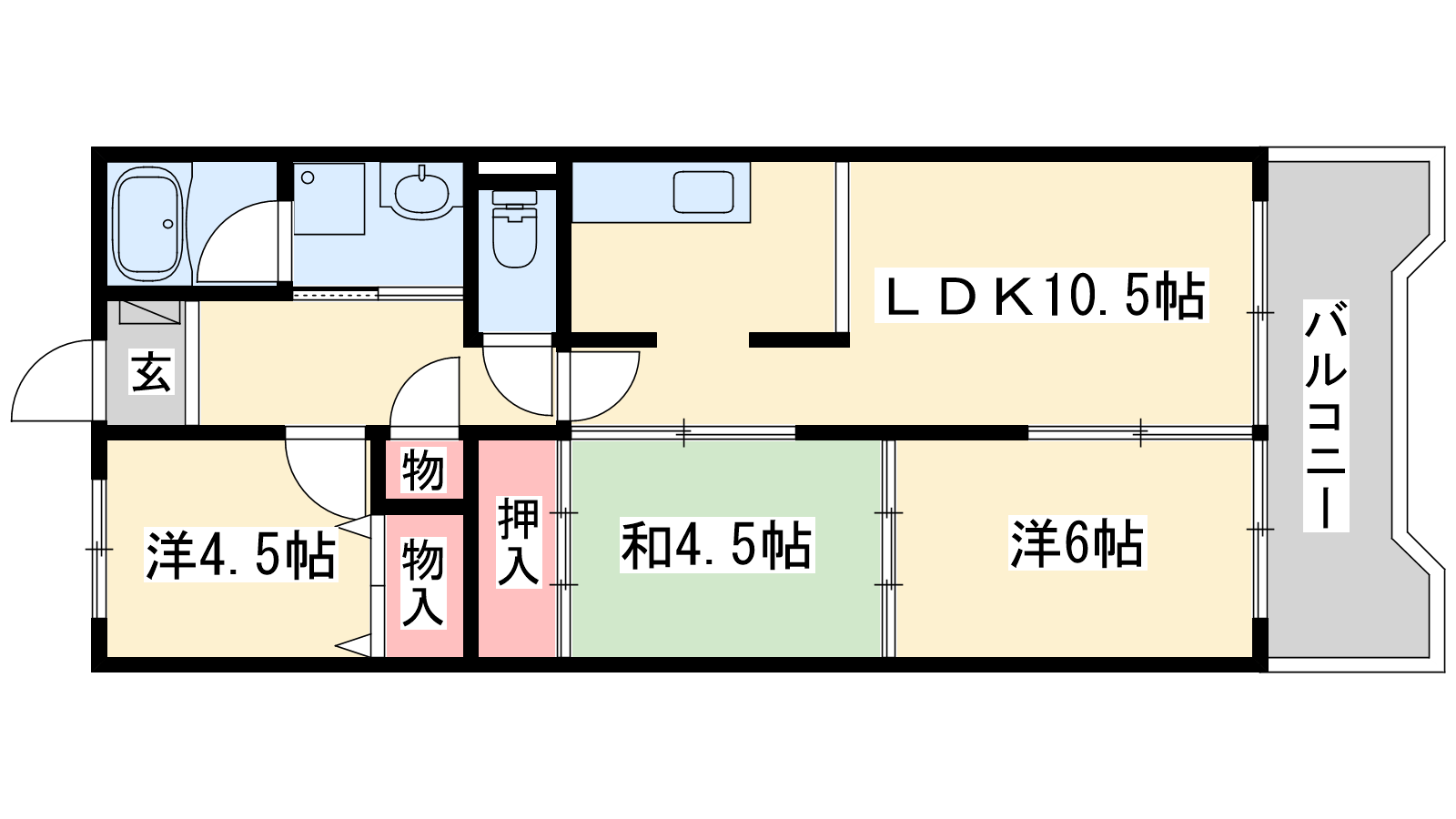 - LDK10.5帖、洋室6帖、洋室4.5帖、和室4.5帖