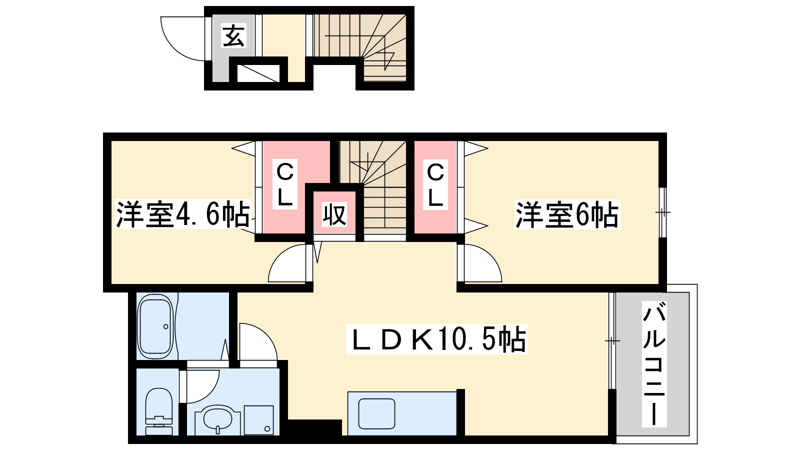 - LDK10.5帖、洋室6帖、洋室4.6帖