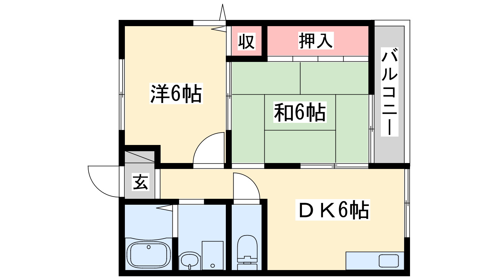 - DK6帖、洋室6帖、和室6帖