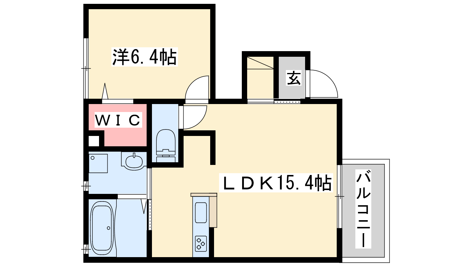 - LDK15.4帖、洋室6.4帖
