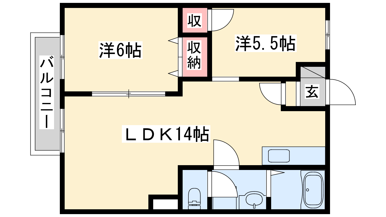 - LDK14帖、洋室6帖、洋室5.5帖