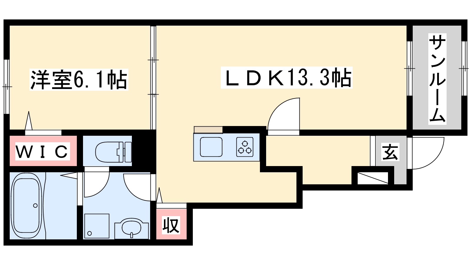 - LDK13.3帖、洋室6.1帖