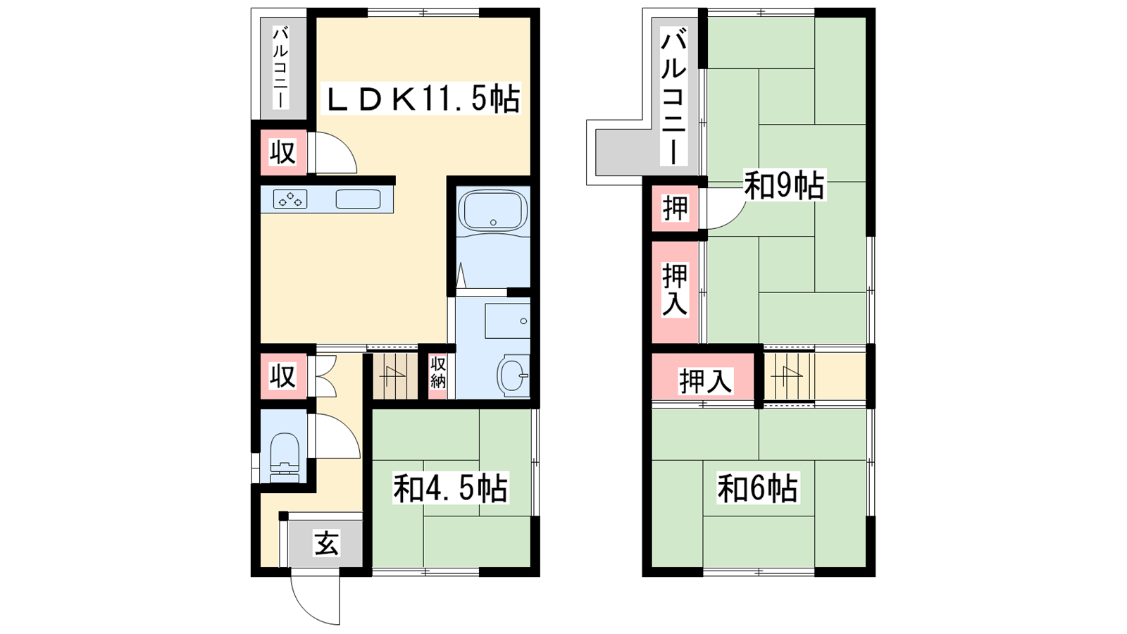 - LDK11.5帖、和室9帖、和室6帖、和室4.5帖