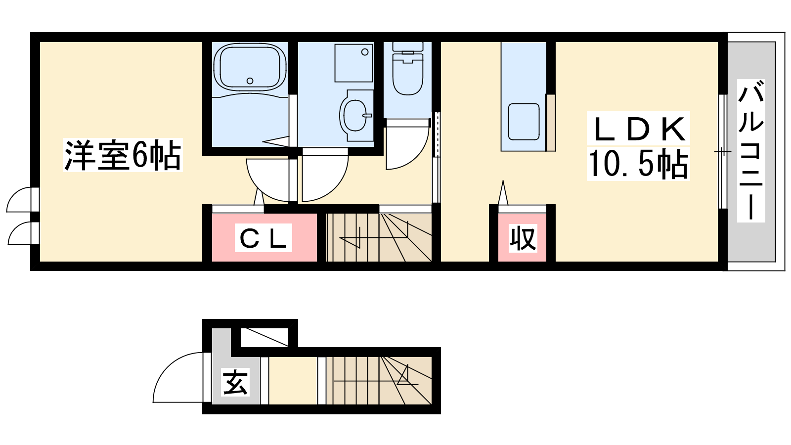 - LDK10.5帖、洋室6帖