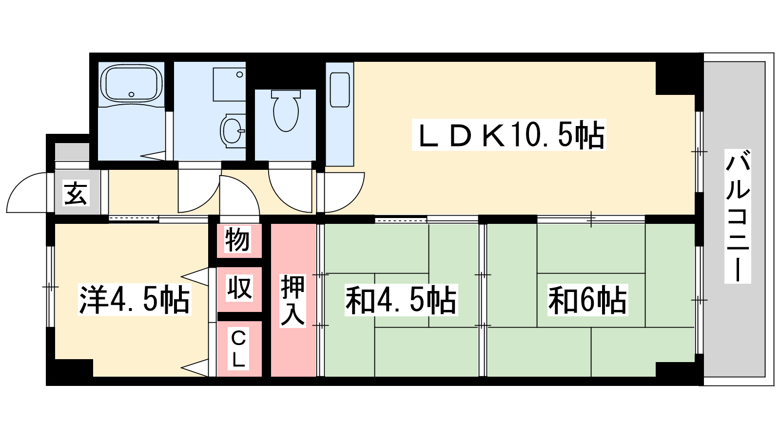 - LDK10.5帖、洋室4.5帖、和室6帖、和室4.5帖