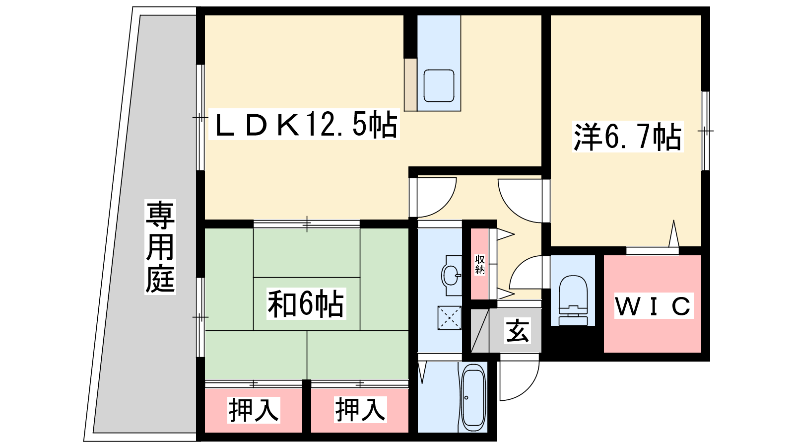 - LDK12.5帖、洋室6.7帖、和室6帖