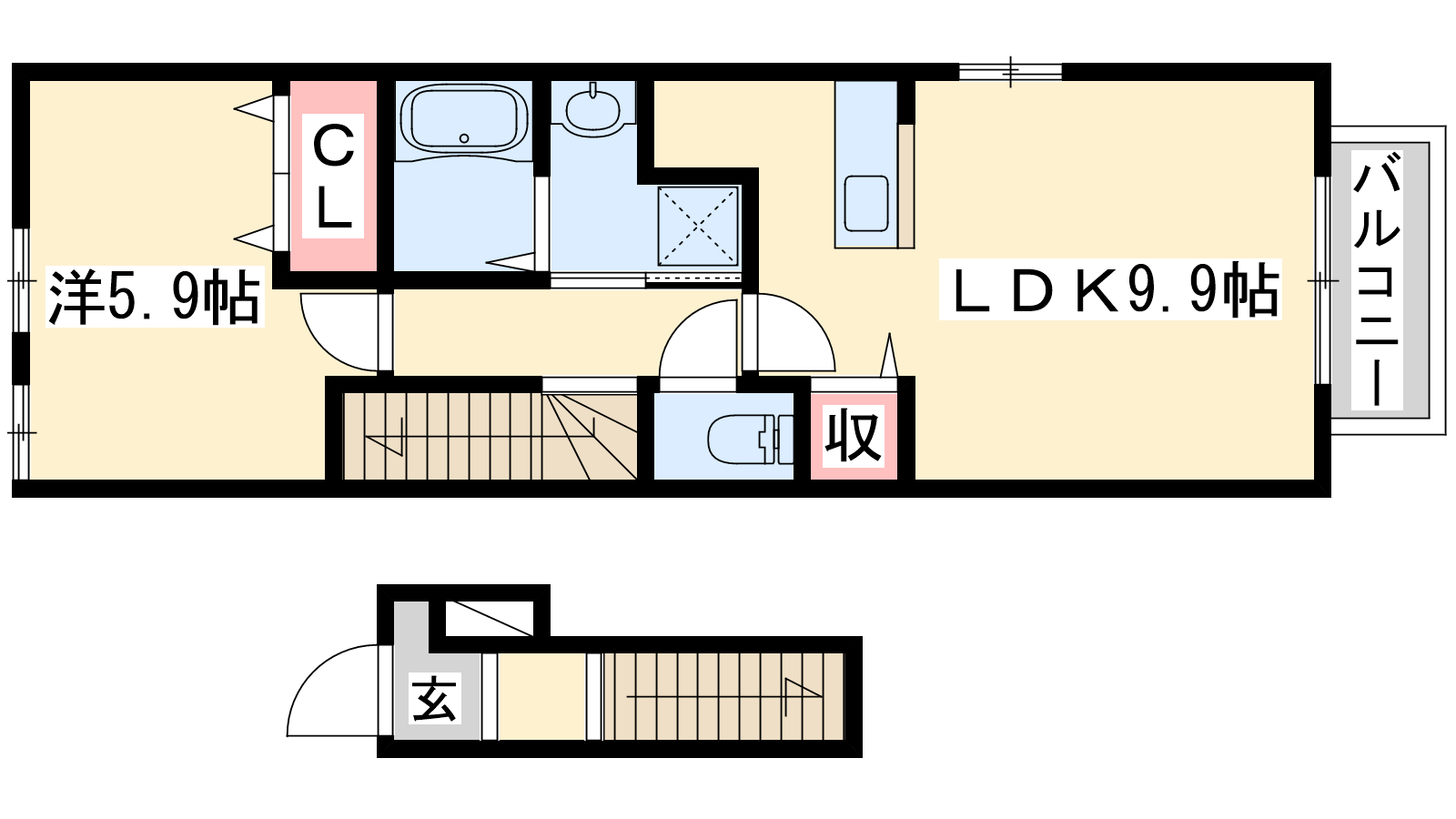 - LDK9.9帖、洋室5.9帖