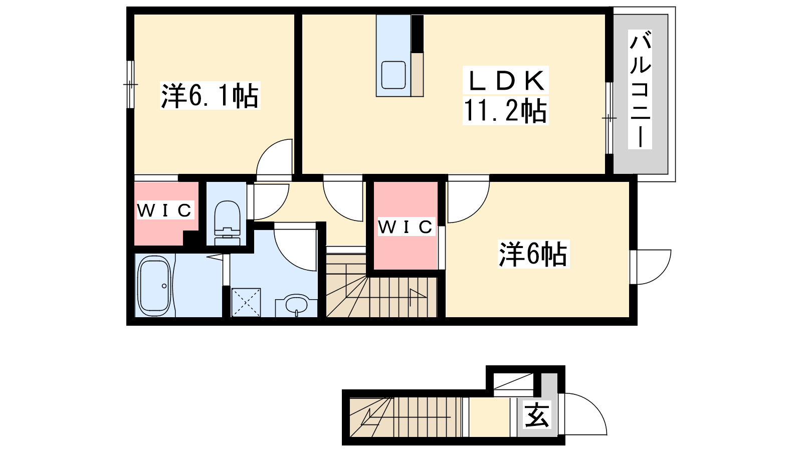- LDK11.2帖、洋室6.1帖、洋室6帖