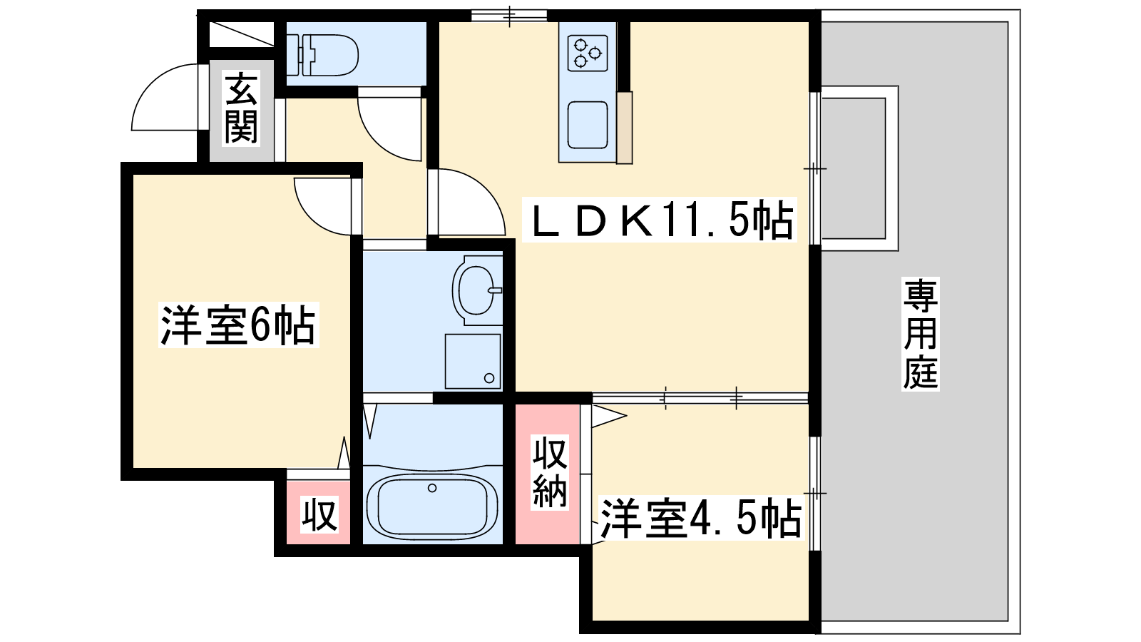 - LDK11.5帖、洋室6帖、洋室4.5帖