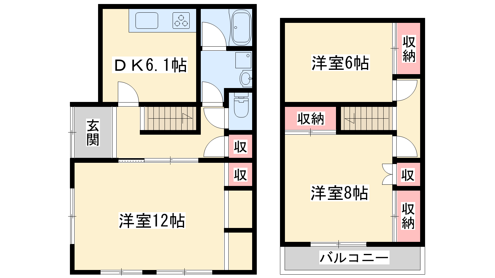 - DK4.5帖、洋室12帖、洋室8帖、洋室6帖