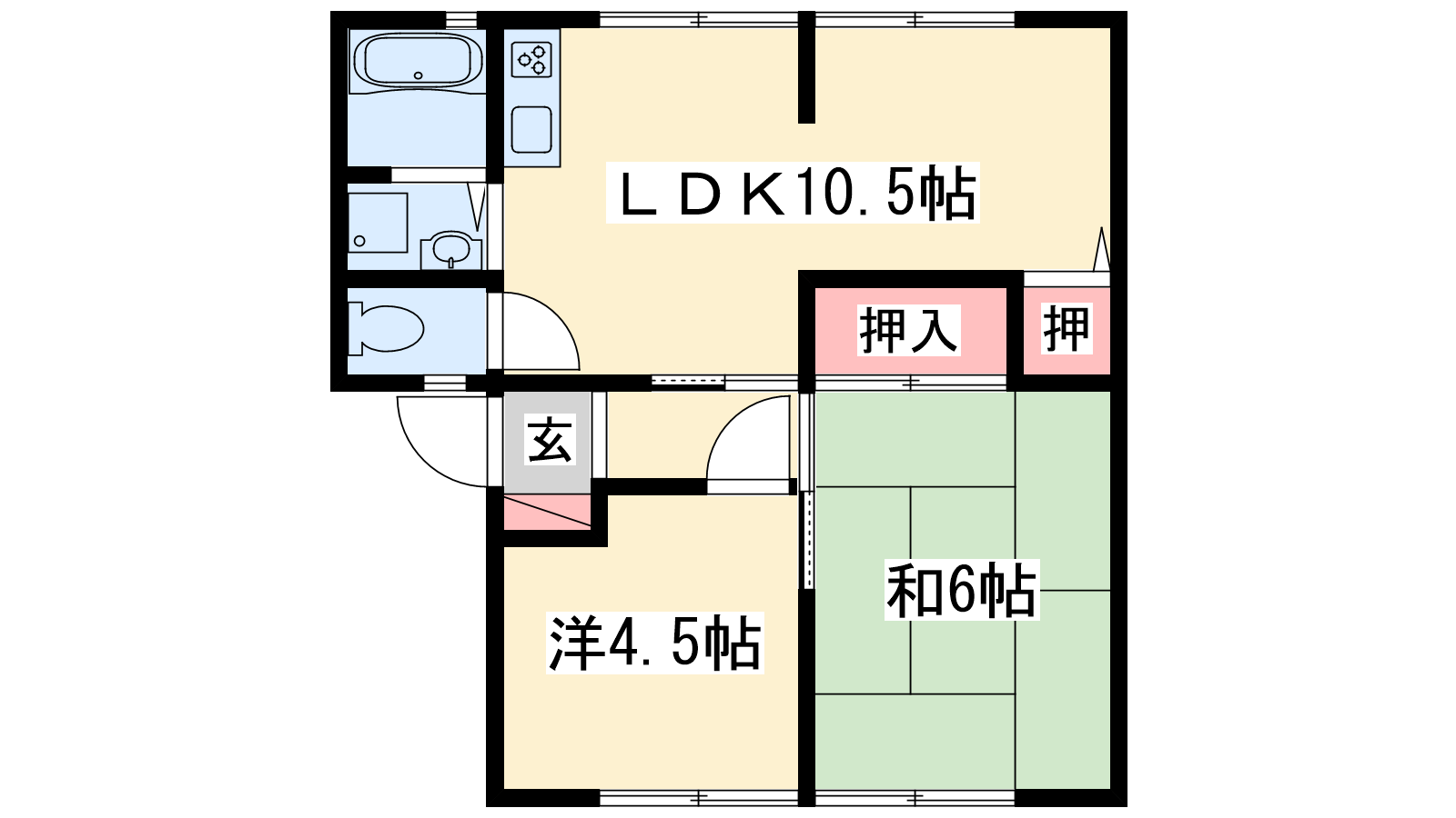 - LDK10.5帖、洋室4.5帖、和室6帖