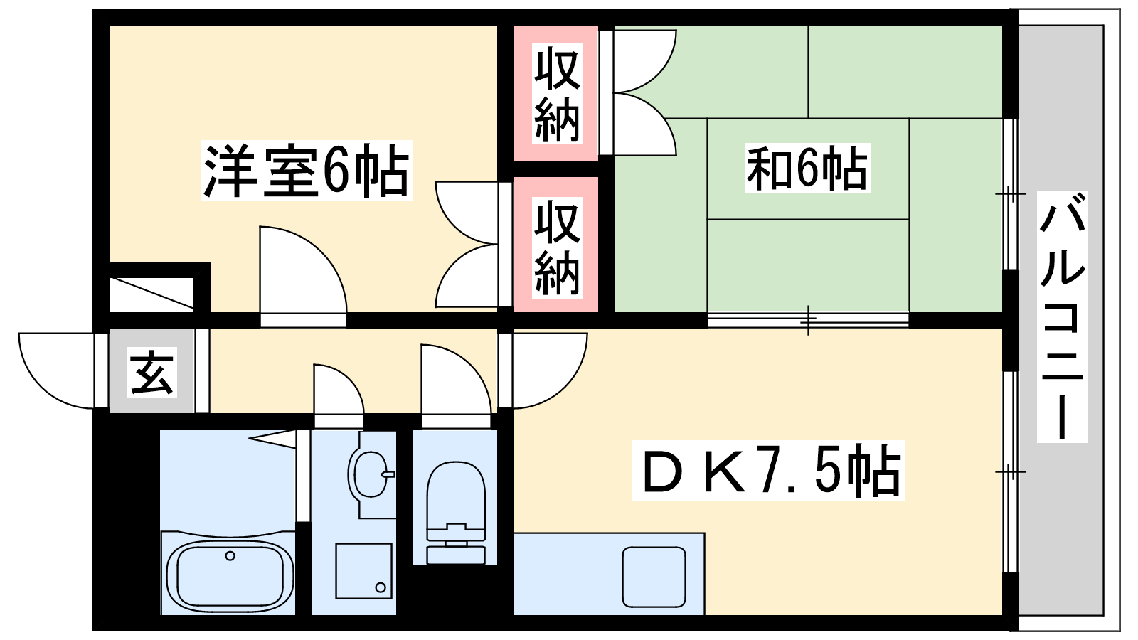 - DK7.5帖、洋室6帖、和室6帖