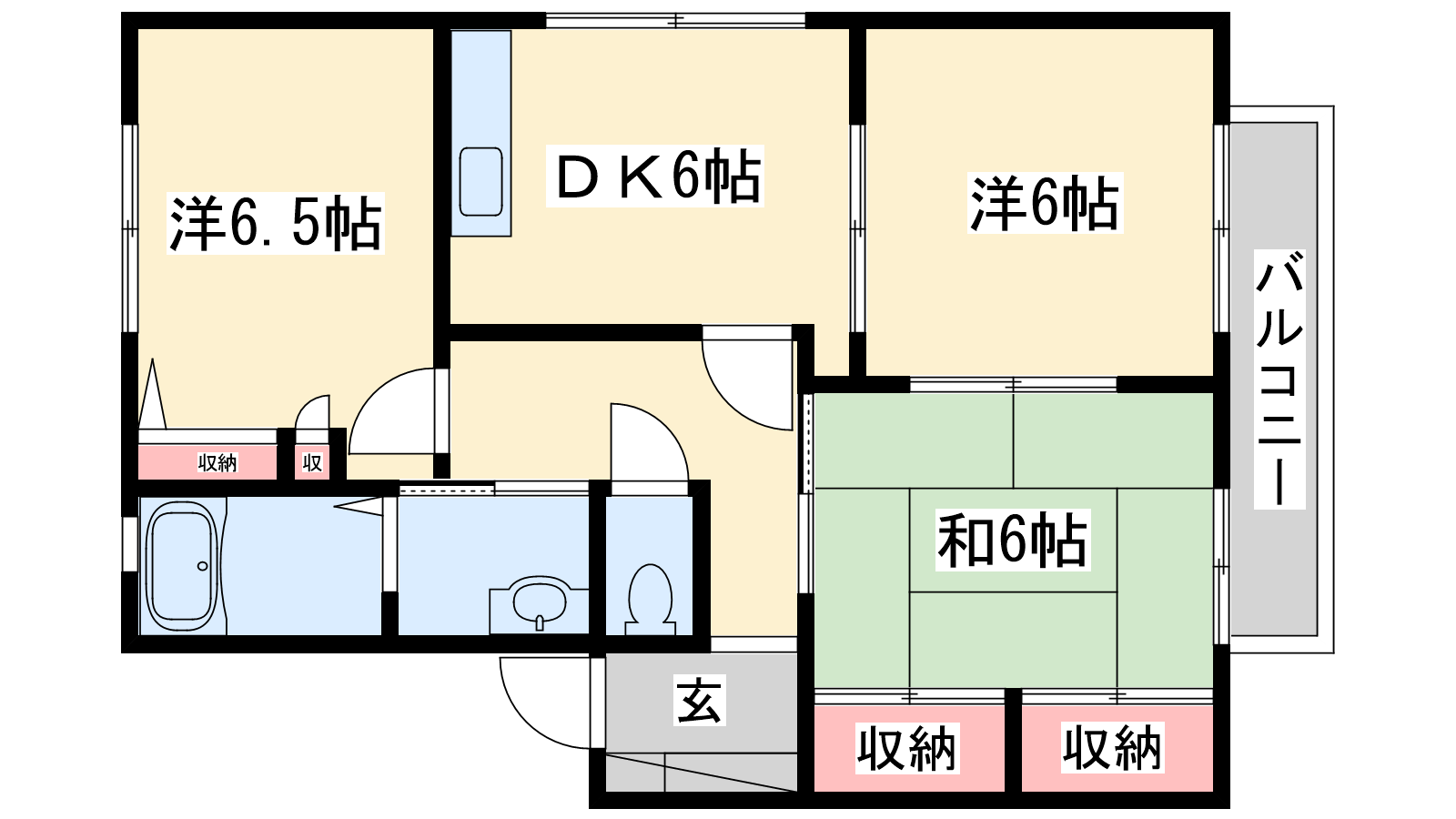 - DK6帖、洋室6.5帖、洋室6帖、和室6帖