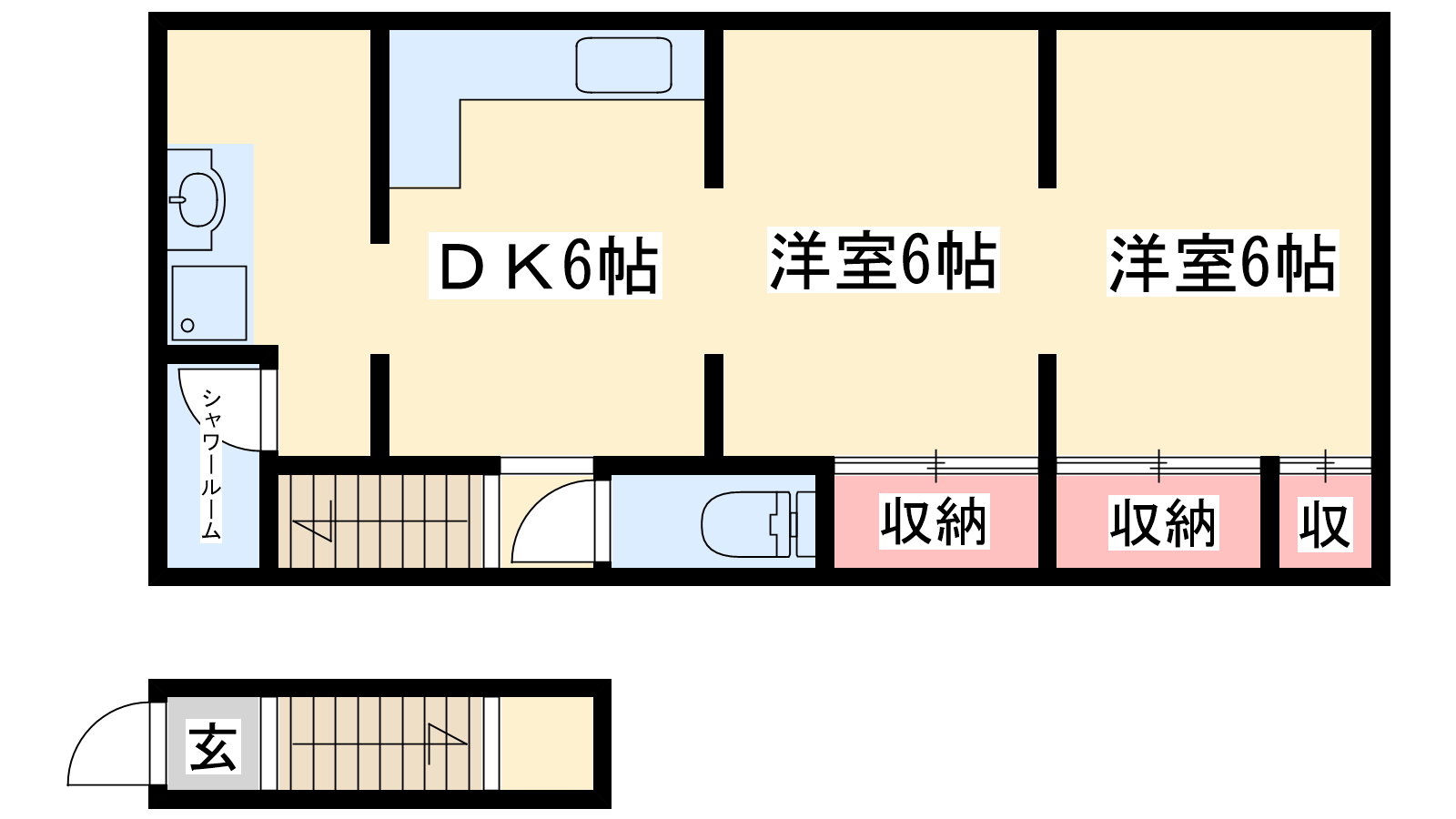 - DK6帖、洋室6帖、洋室6帖