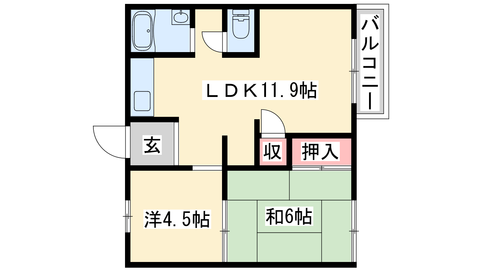 - LDK11.9帖、和室6帖、洋室4.5帖