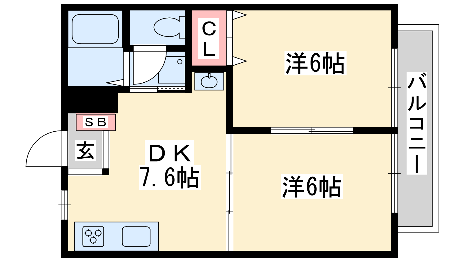 - DK7.6帖、洋室6帖、洋室6帖