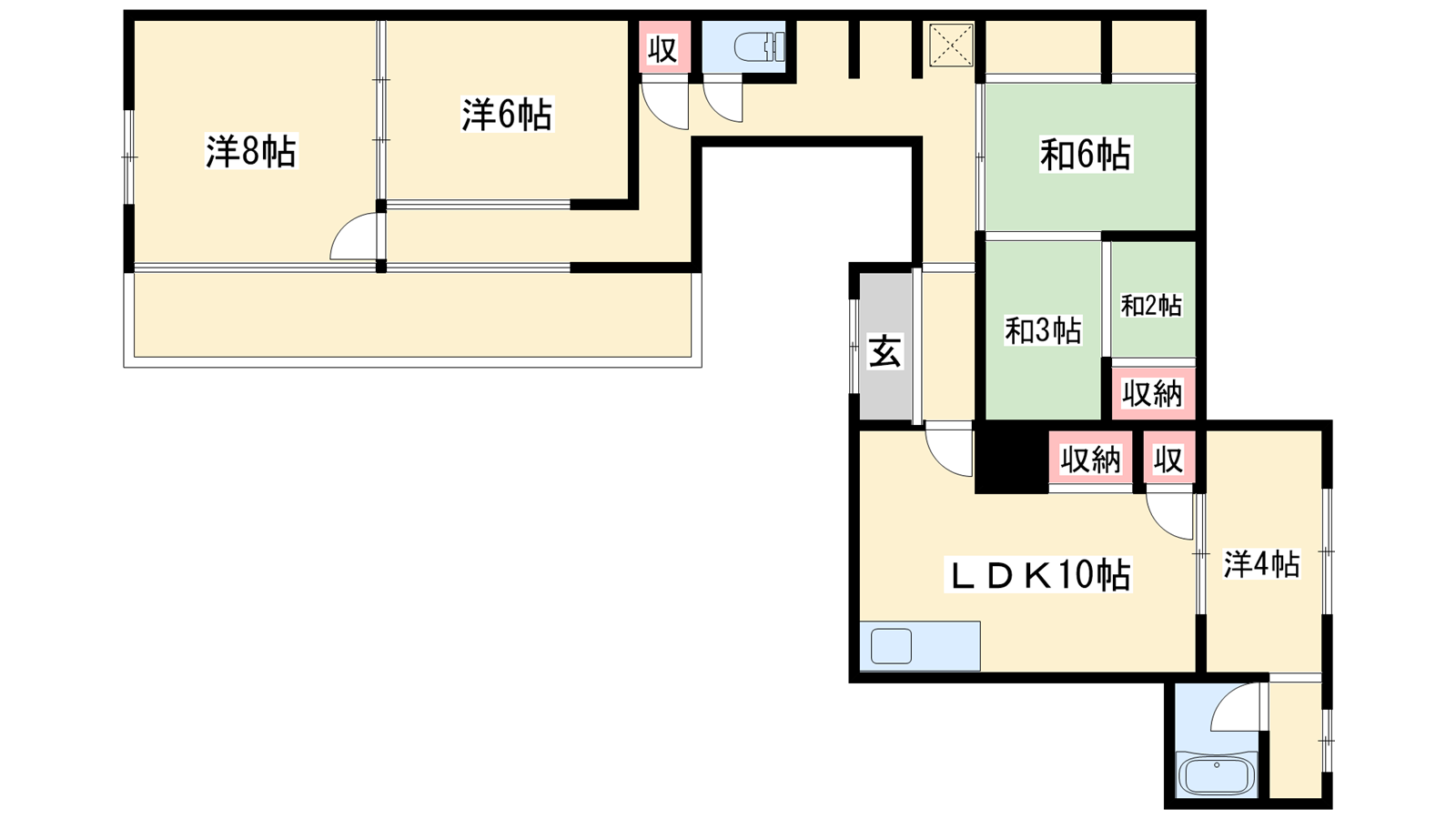- LDK10帖、洋室8帖、洋室6帖、和室6帖、和室5帖、和室4帖