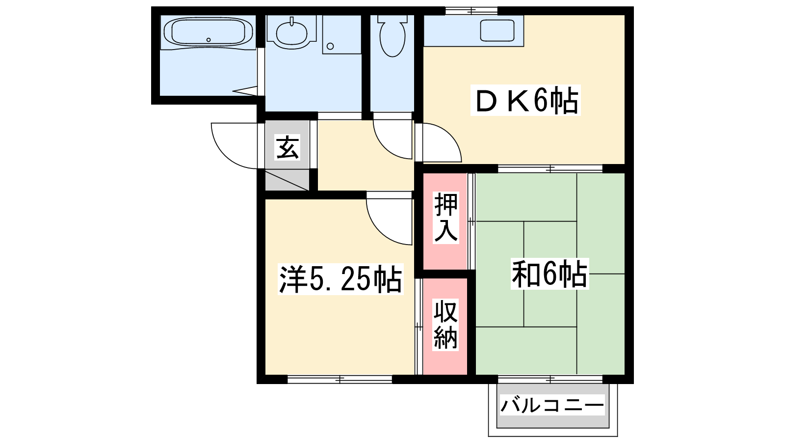 - DK6帖、洋室5.25帖、和室6帖