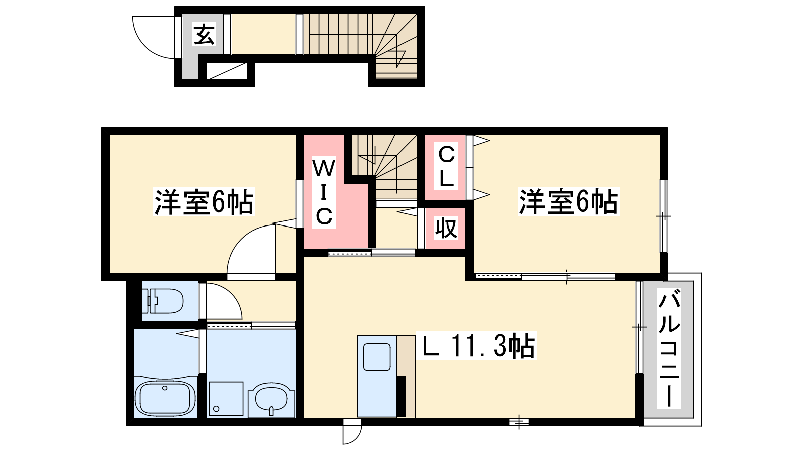 - LDK11.3帖、洋室6帖、洋室6帖