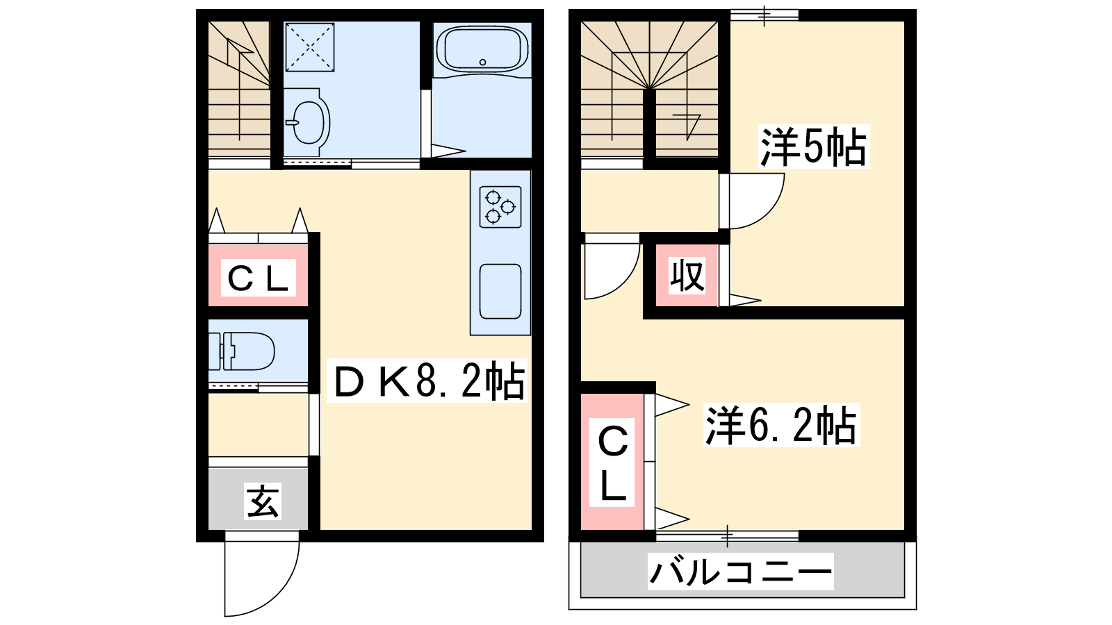 - DK8.2帖、洋室6.2帖、洋室5帖
