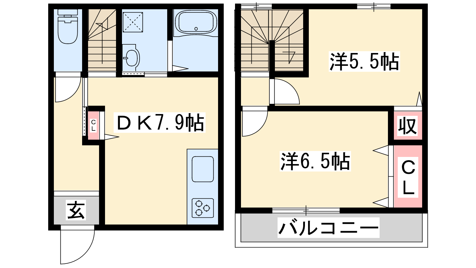 - DK7.9帖、洋室6.5帖、洋室5.5帖