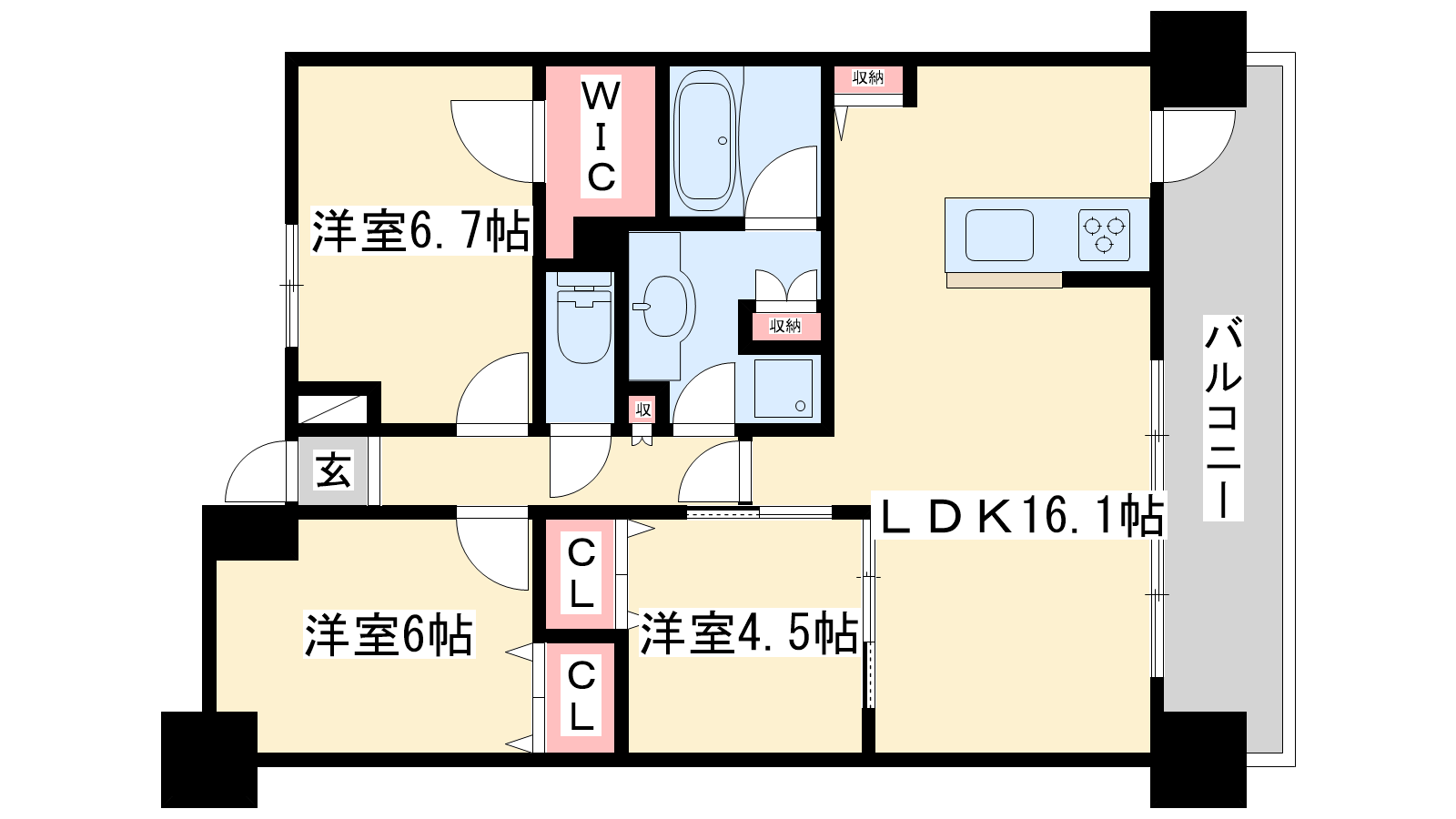 - LDK16.1帖、洋室6.7帖、洋室6帖、洋室4.5帖