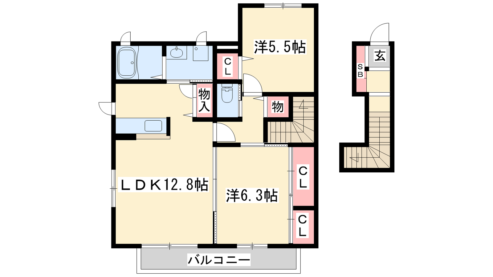 - LDK12.8帖、洋室6.3帖、洋室5.5帖