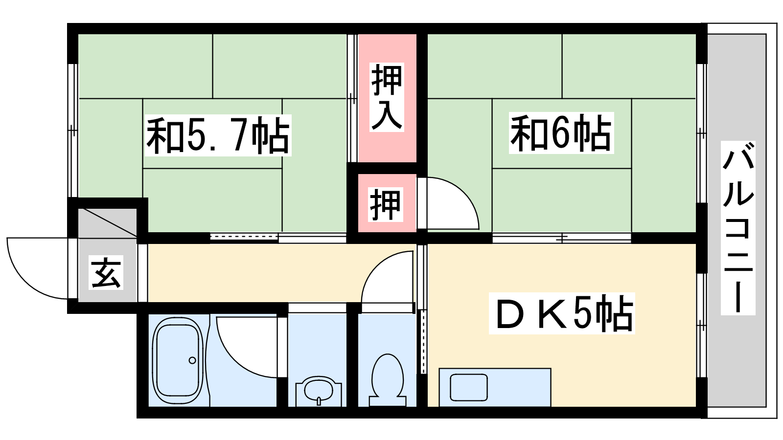 - DK5帖、和室6帖、和室5.7帖