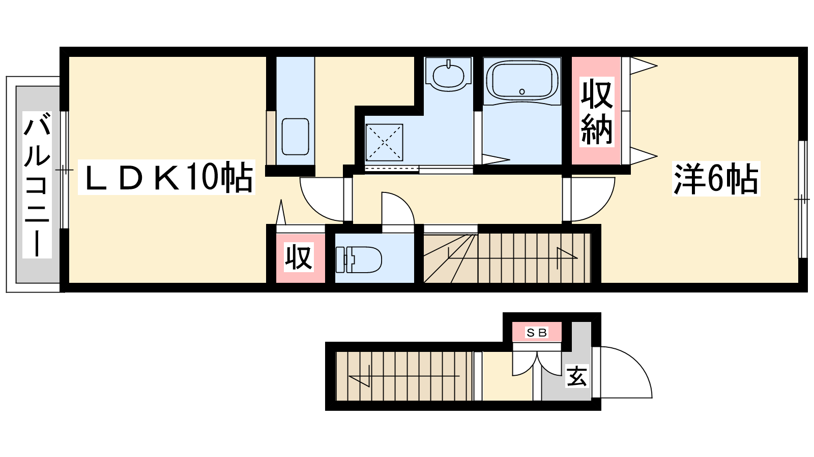 - LDK10帖、洋室6帖