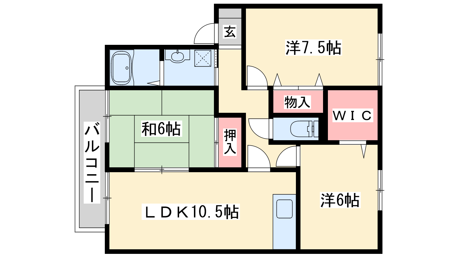 - LDK10.5帖、洋室7.5帖、洋室6帖、和室6帖