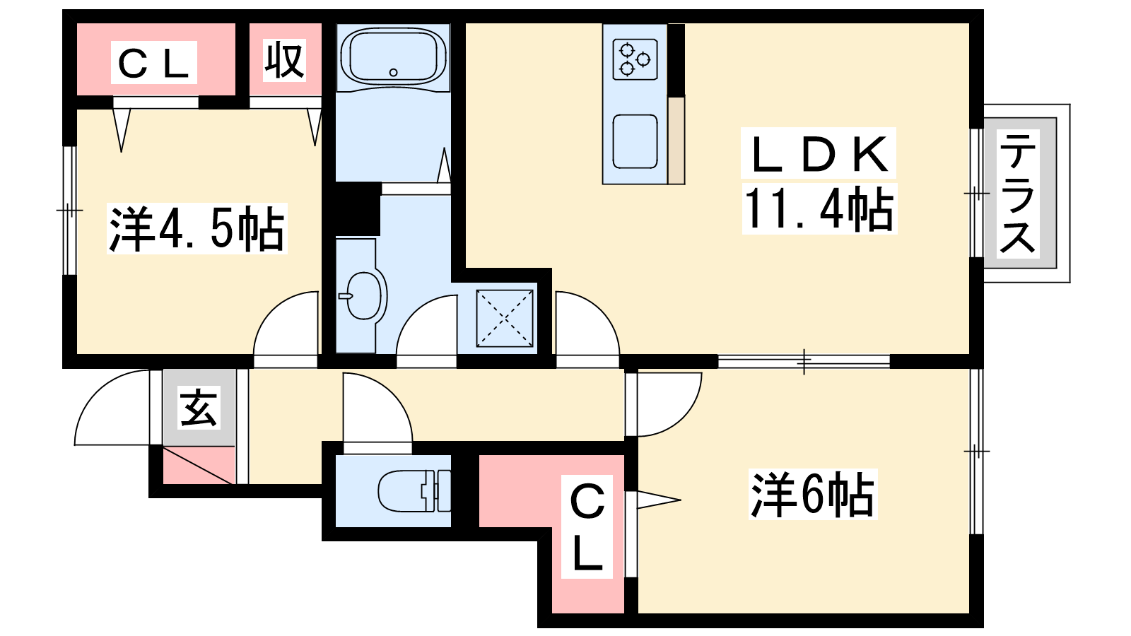 - LDK11.4帖、洋室6帖、洋室4.5帖