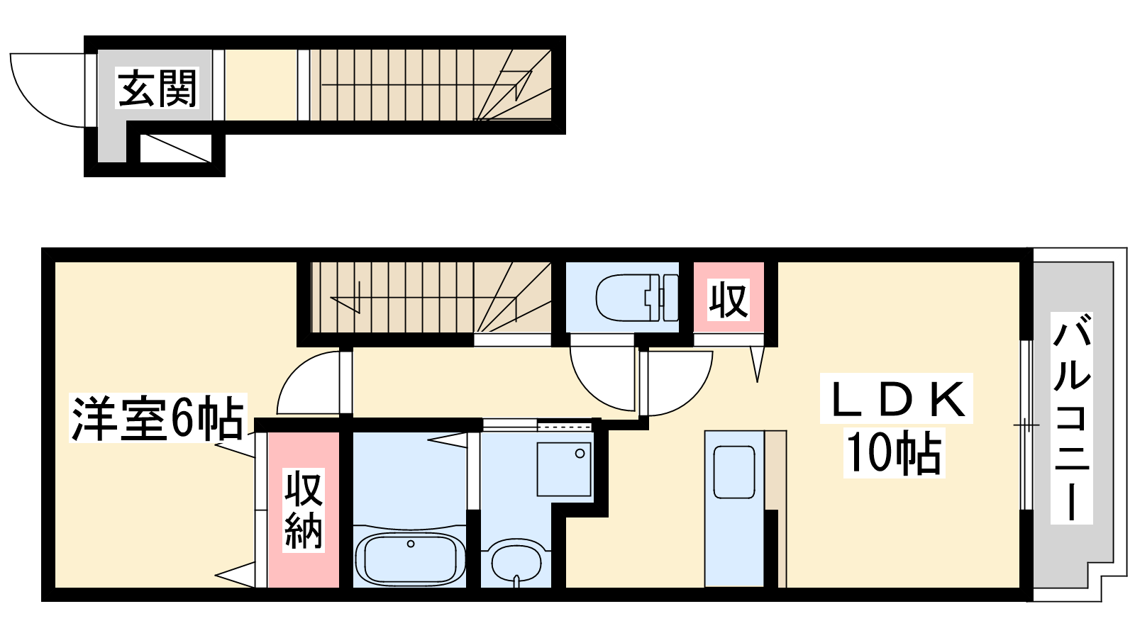 - LDK10帖、洋室6帖