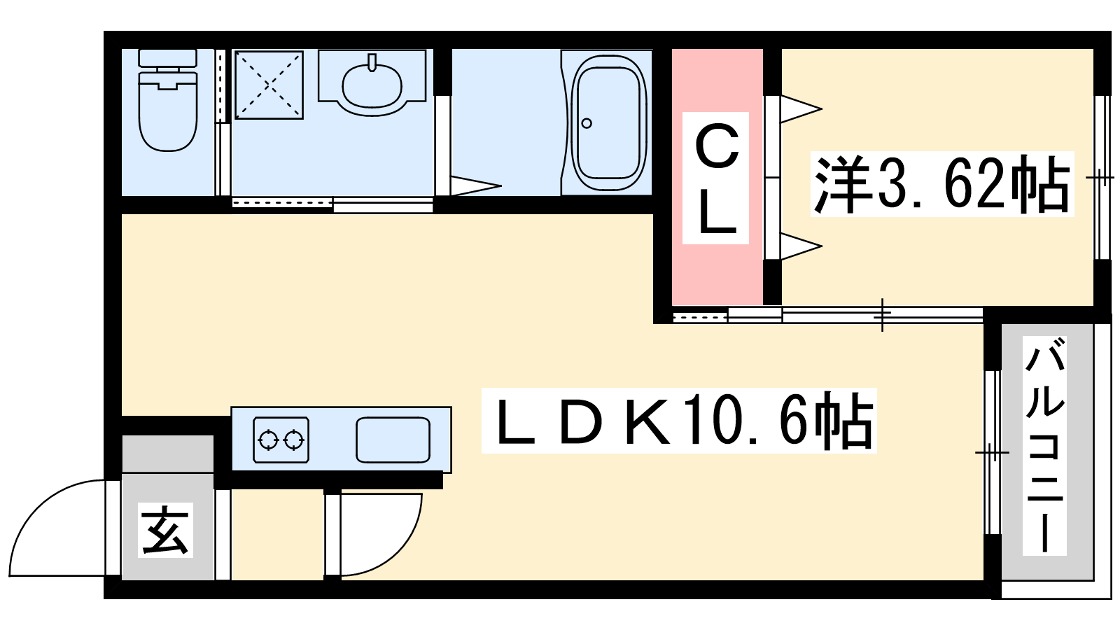 - LDK10.6帖、洋室3.62帖