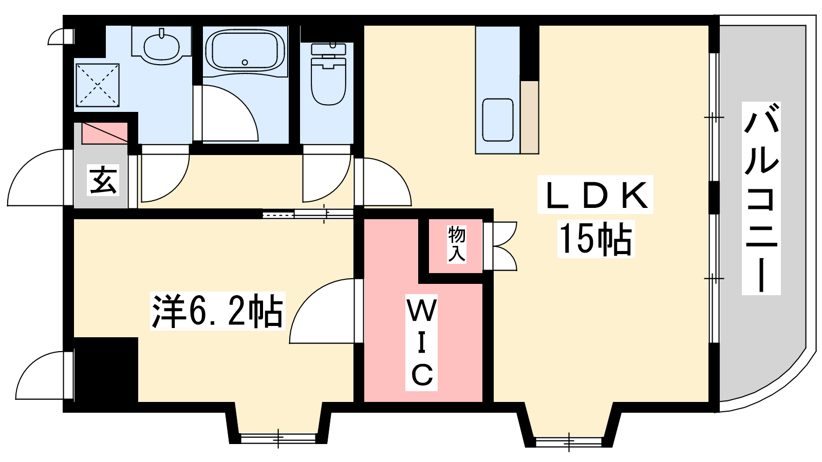 - LDK15帖、洋室6.2帖