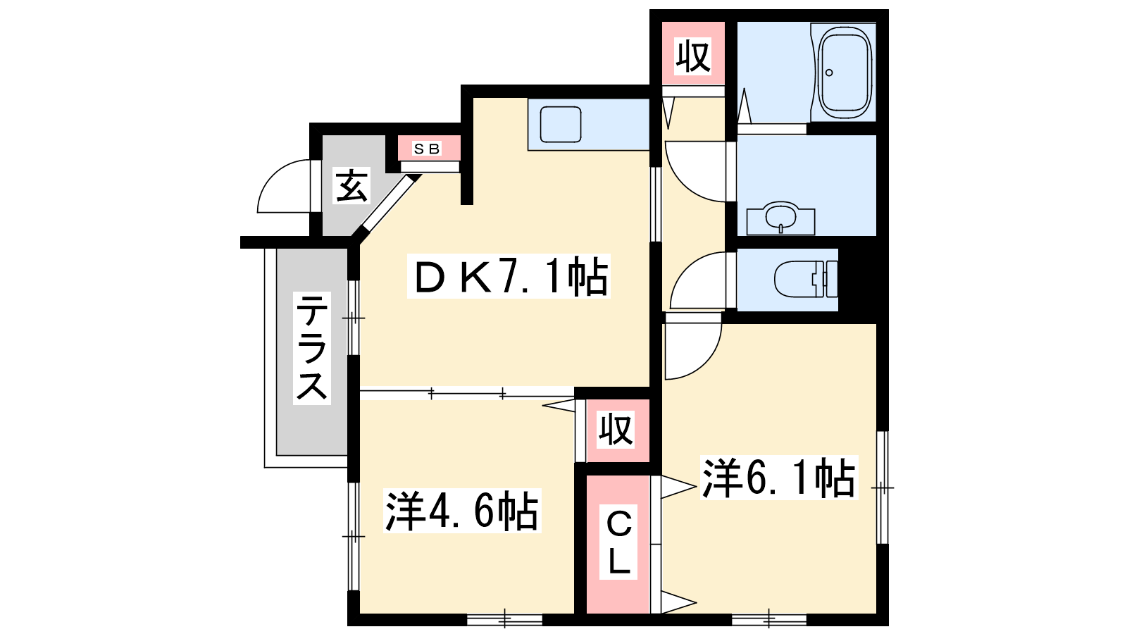 - DK7.1帖、洋室6.1帖、洋室4.6帖