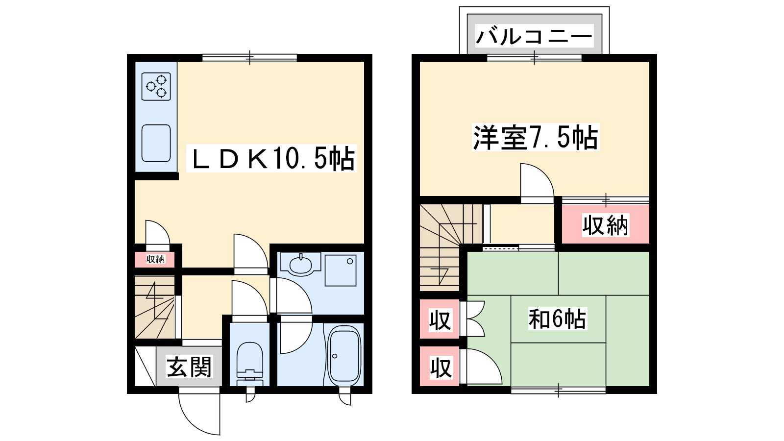 - LDK10.5帖、洋室7.5帖、和室6帖