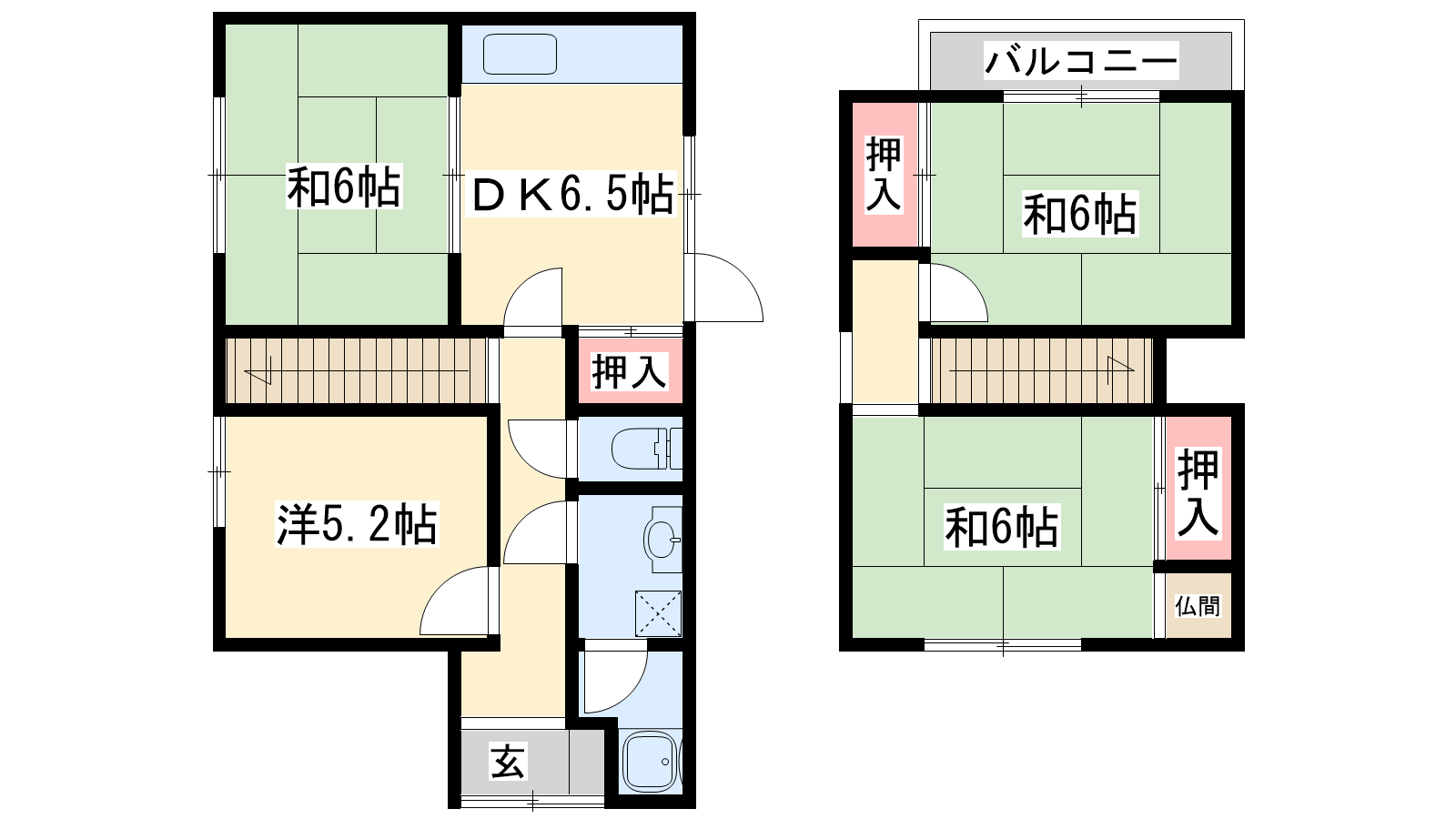 - DK6.5帖、洋室5.25帖、和室6帖、和室6帖、和室6帖