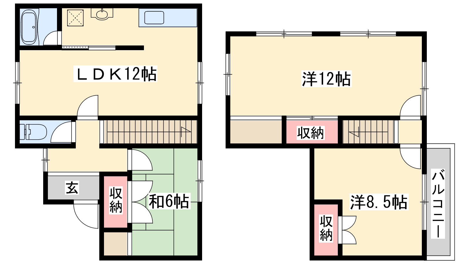 - LDK12帖、洋室12帖、洋室8.5帖、和室6帖