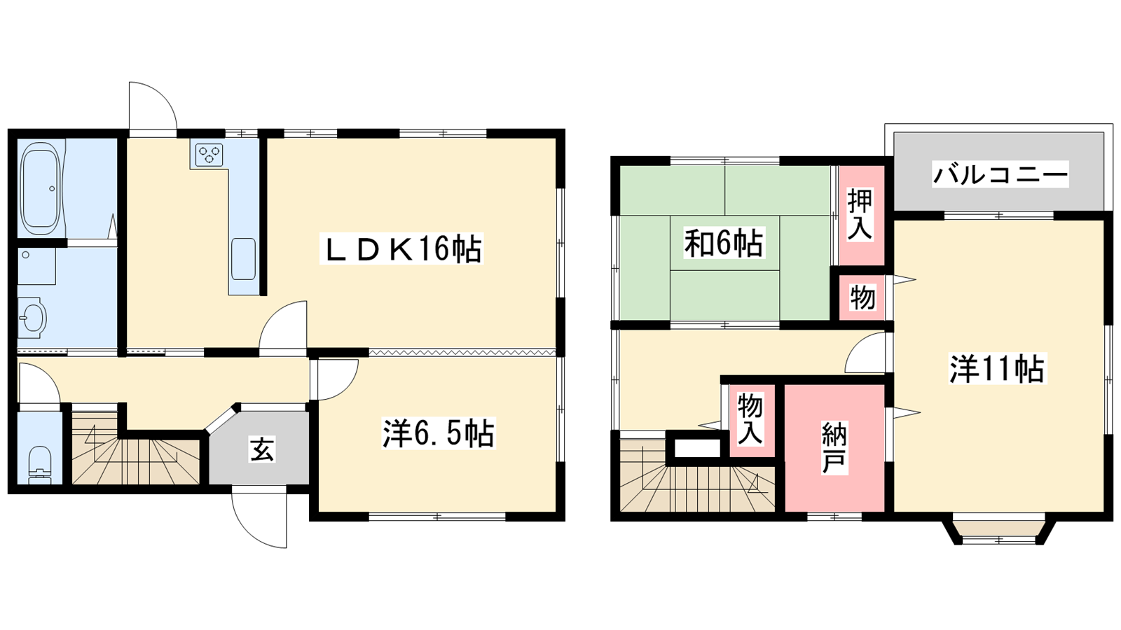 - LDK16帖、洋室11帖、洋室6.5帖、和室6帖