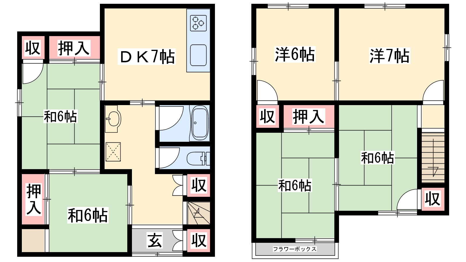 - DK7帖、洋室7帖、洋室6帖、和室6帖、和室6帖