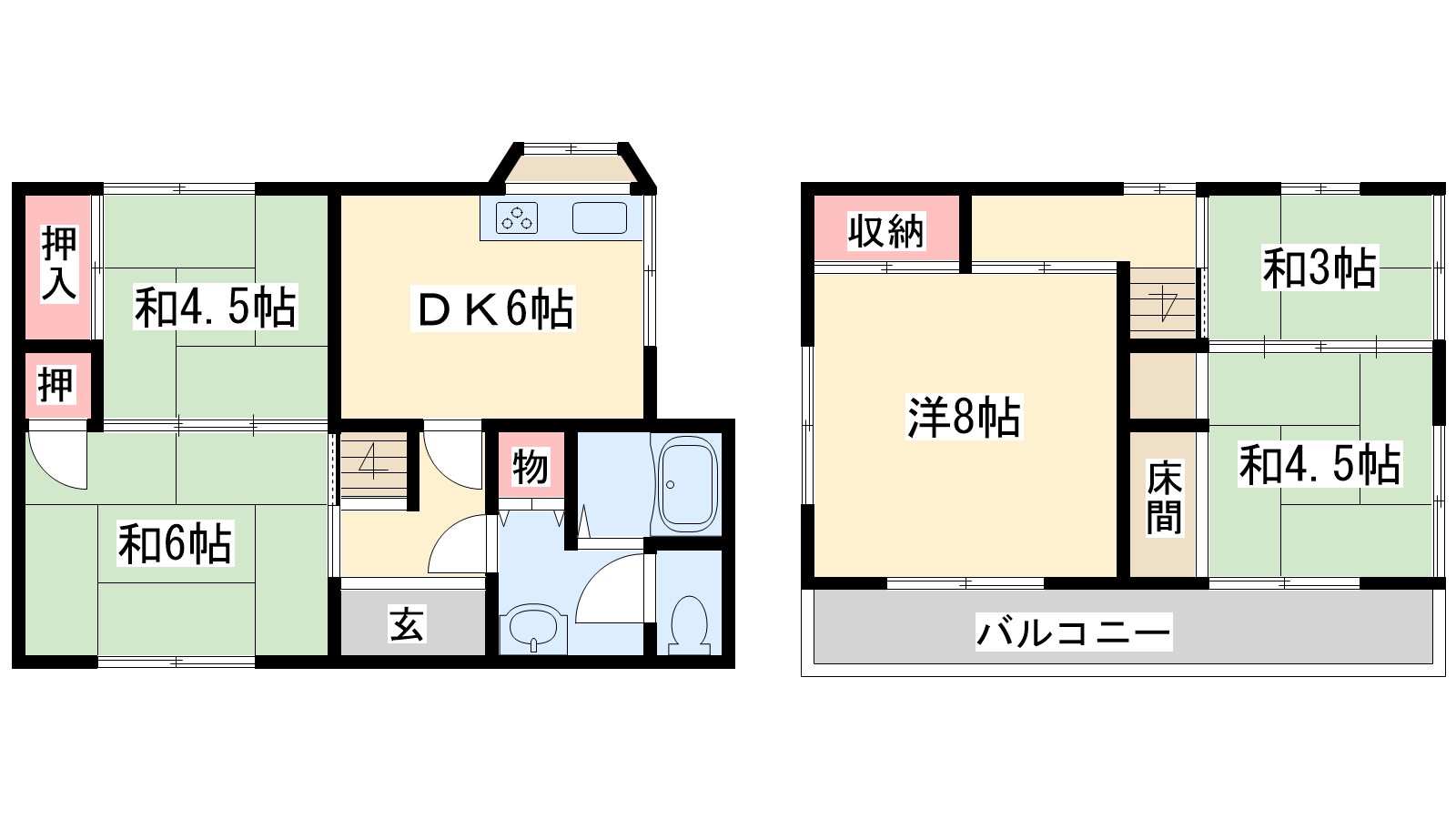 - DK6帖、洋室8帖、和室6帖、和室4.5帖、和室4.5帖