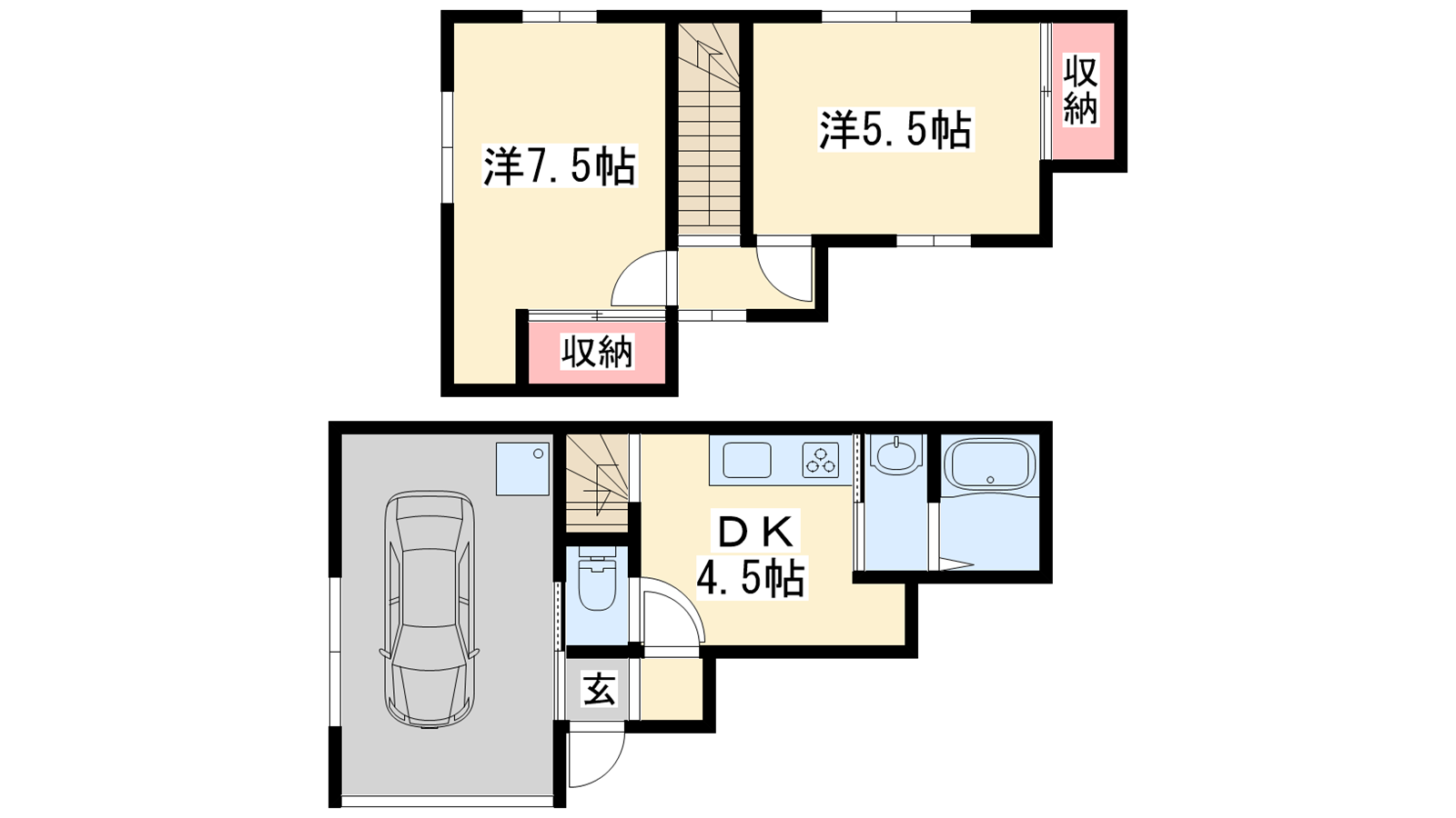 - DK4.5帖、洋室7.5帖、洋室5.5帖