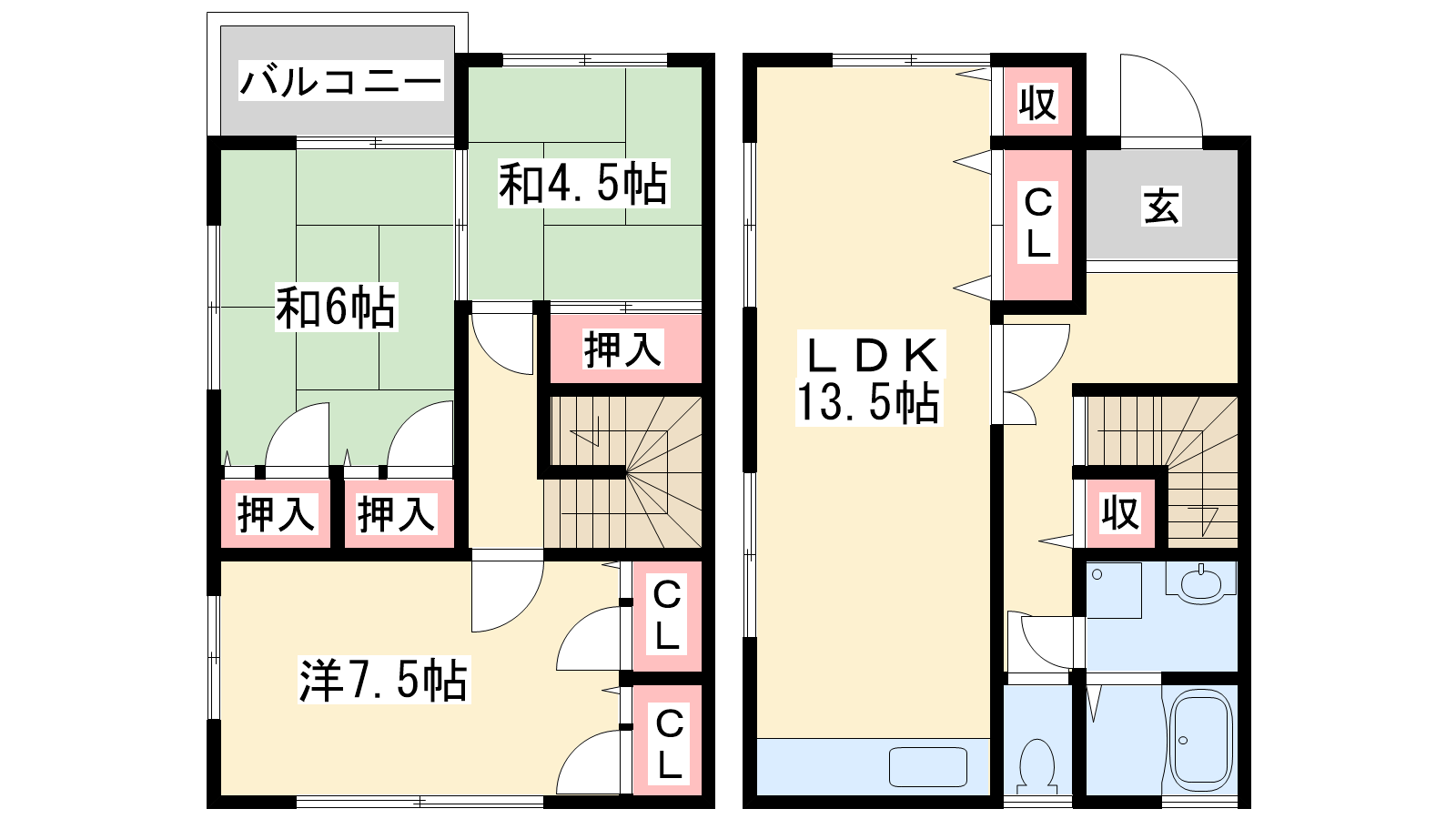 - LDK13.5帖、洋室7.5帖、和室6帖、和室4.5帖