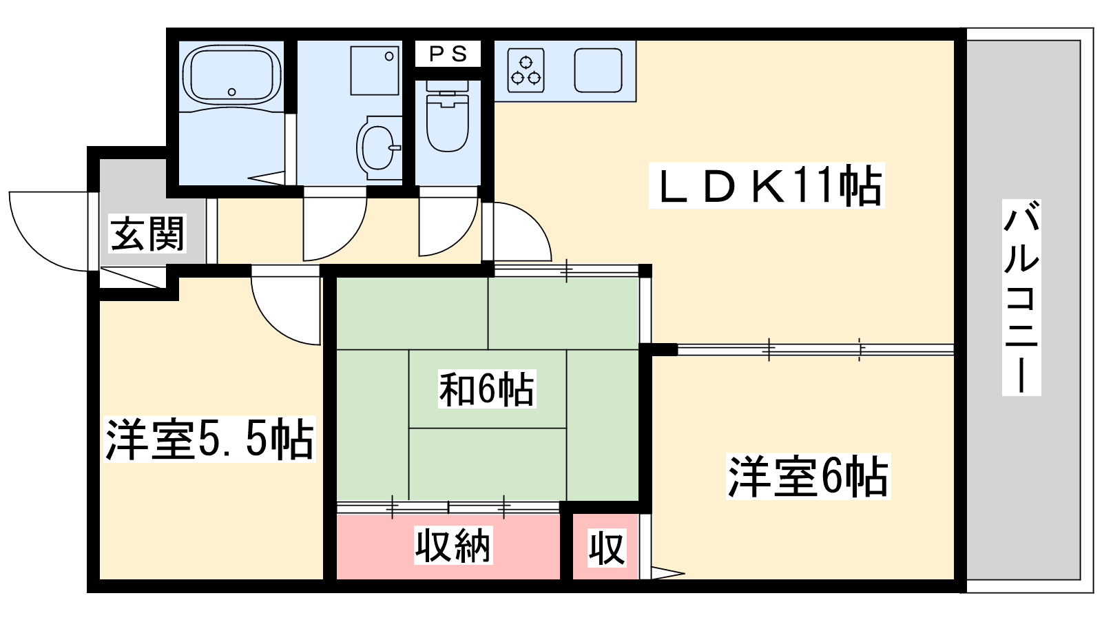 - LDK11帖、洋室6帖、和室6帖、洋室5.5帖