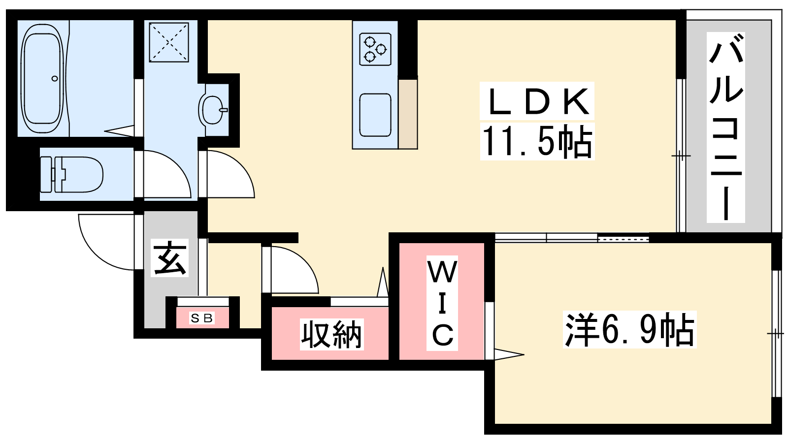 - LDK11.5帖、洋室6.9帖