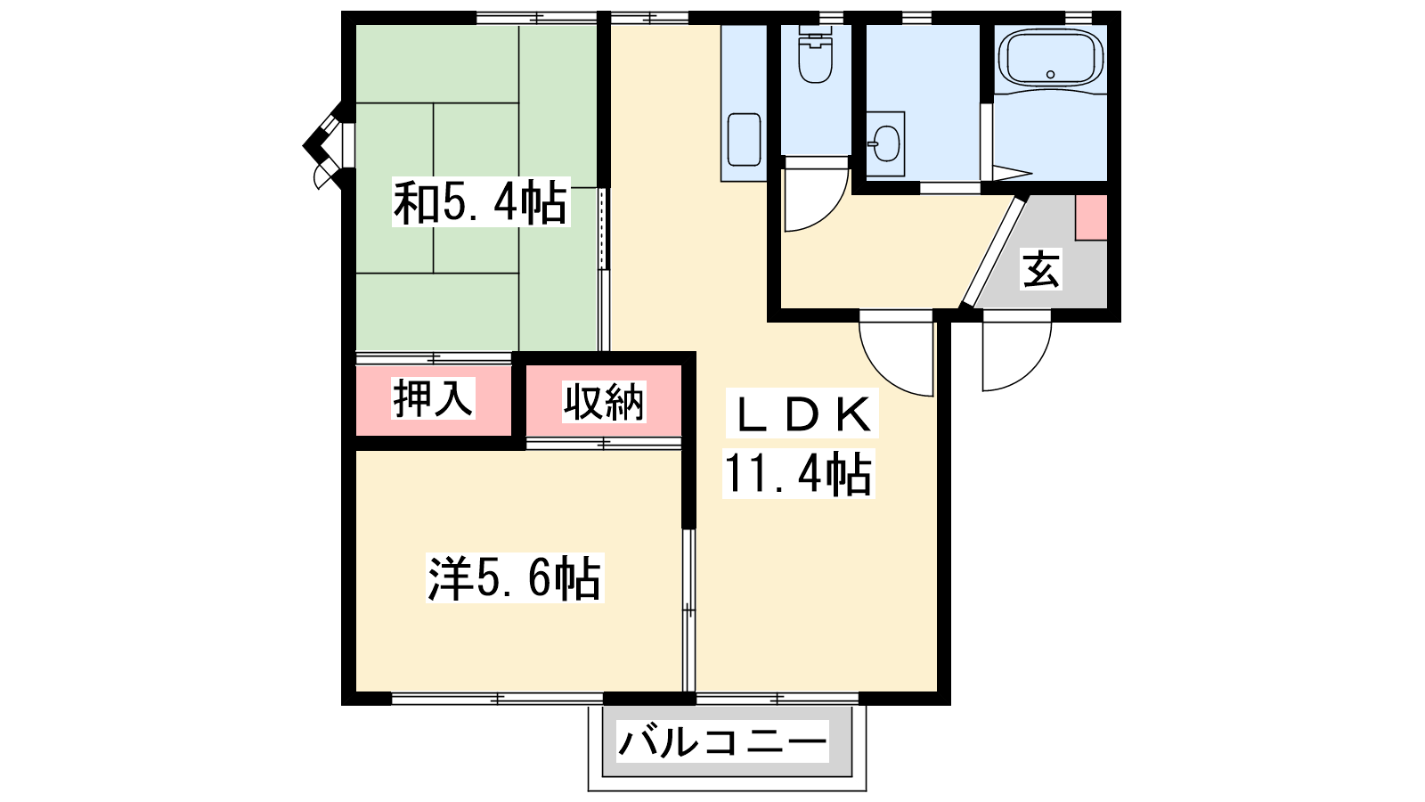 - LDK11.4帖、洋室5.6帖、和室5.4帖